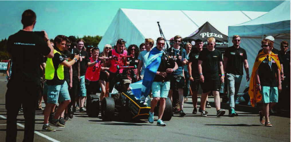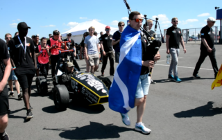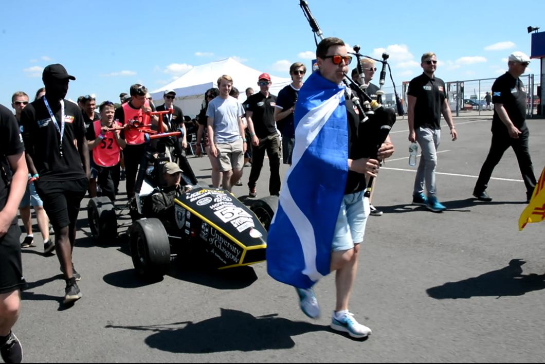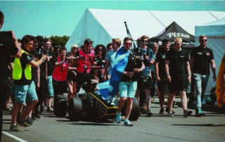 UGR-18 attracted a huge amount of attention at the event, with her distinctive bodywork and unprecedented performance in the dynamic events. The team wowed onlookers after the final scrutineering with a procession back to the pits led by our very own piper and even made an appearance on BBC News.