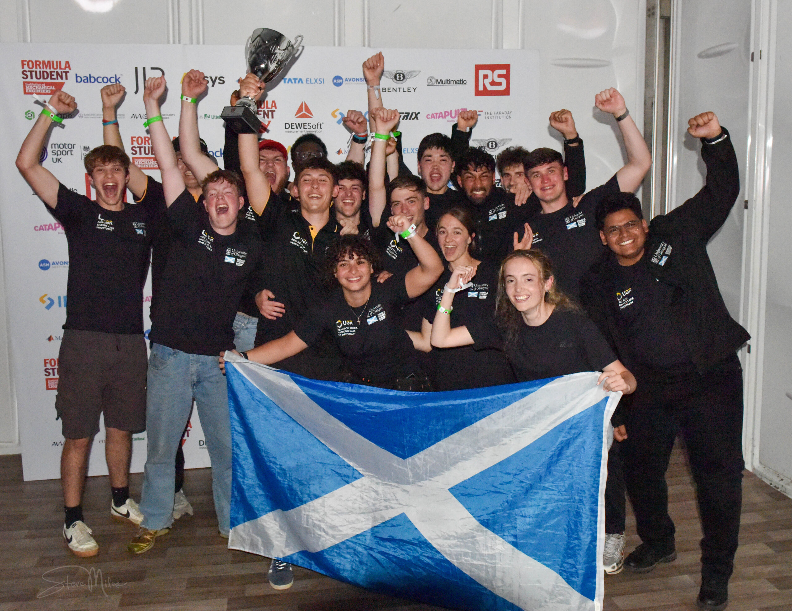 Once again UGRacing have smashed team records and had their most successful year at Formula Student UK. With everyone focused on avoiding a repeat of 2017’s endurance event, the competition saw several huge team successes: being the first team into scrutineering, completing scrutineering by 1pm on the second day of the event, winning second place in both the Business and Communications awards (our first ever UK podiums) and completing all of the dynamic events for the first time in the team’s history. These individual successes combined to cause us to finish in 11th place overall, 6th in the UK and most importantly, first in Scotland!