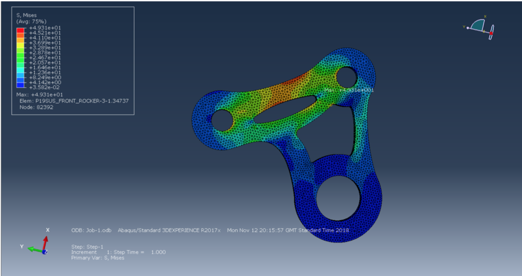What are the specific features of your design? The rocker assembly consists of two plasma cut aluminium alloy plates with a housing in between containing the bearings and a spacer. Using Finite Element Analysis methods and topology optimization, the load paths were identified and excess material was removed to keep the design at a low mass.