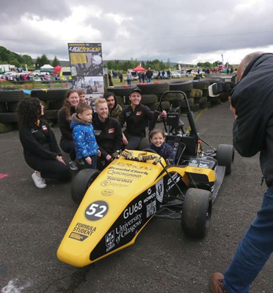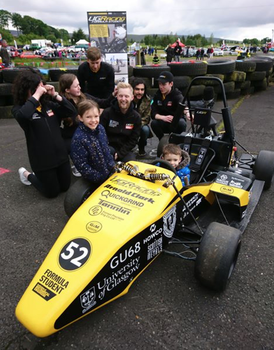 Today the team took UGR-19 for her first outing! As part of our Outreach and Engagement program, we were invited along to the Kames Classic Car Show. We got to chat with lots of members of the local motorsport community about Formula Student and our work over the last few years. It was also a great opportunity to promote STEM subjects to some younger motorsport fans, and we think we’ve found this year’s drivers…