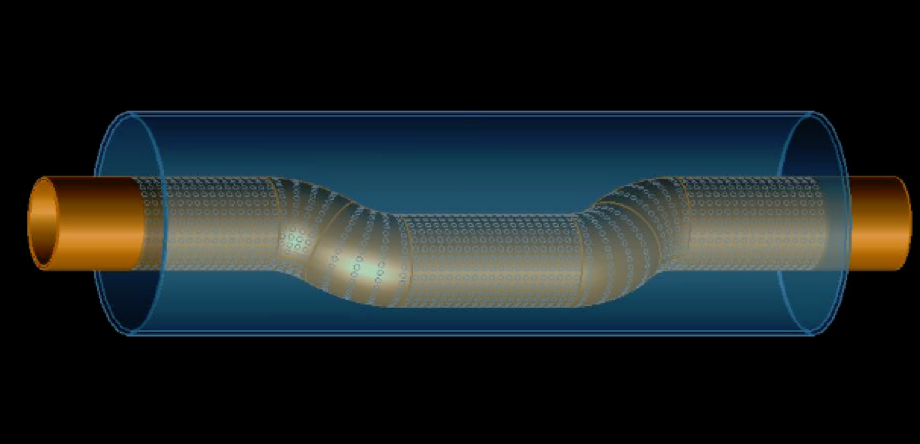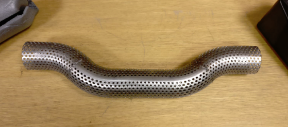 What are the specific features of your design? The main change this year was the change of the geometry inside the can. Instead of having a straight pipe through the can, the perforated pipe has two bends in it. This was done in order to increase the sound attenuation of the component, whilst not being restrictive enough to limit the power very much. An image of this, in the software package, and the product received from the manufacturer, can be seen above.